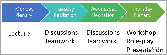 In previous face-to-face version of the class, faculty take turns to lecture on a topic during the plenary session each week and host the discussion sessions of their own sections. But in Session 4, this had to change. All lectures were recorded with captions and transcripts, for students to view at their own pace, but the class regularly met as a whole for a plenary session chaired by Dean Miller. During this time together, the professors followed an outline that was partially scripted and partly spontaneous, each emphasizing their own interpretation of the topic under discussion. This distributed lecturing created a collective effort atmosphere for the plenary session. Consequently, students felt they were truly forming a community led by a team of faculty, instead of belonging to one professor of a certain section who happened to sit with others in the same room twice a week.