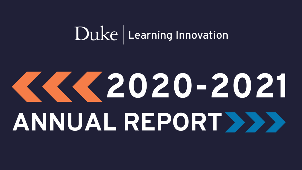 We didn’t produce an annual report last year. Annual reports require time to reflect, analyze and celebrate. Having just come off of the emergency remote teaching efforts of Spring 2020, we chose to combat uncertainty and instability with a new long-term strategy for influencing and supporting the overall success of Duke courses during the pandemic – be they online, hybrid, remote, temporarily remote and/or in-person. We called this new effort Flexible Teaching. And though some might have thought that here – one year later in Fall of 2021, those efforts would no longer be necessary, we not only find them to be essential but continue to build upon them. In many ways flexible teaching has become part of the core of who and what Learning Innovation is and does.