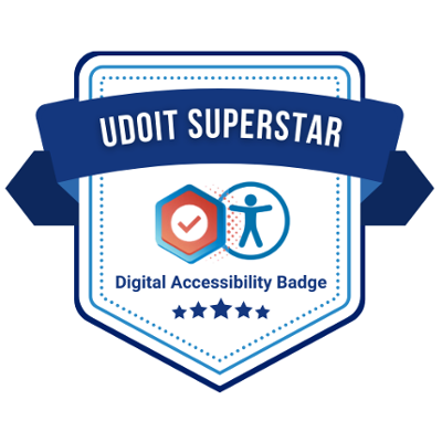 Among Duke’s first badge offerings is the UDOIT Superstar Badge, created to promote and recognize inclusive course design in Canvas.